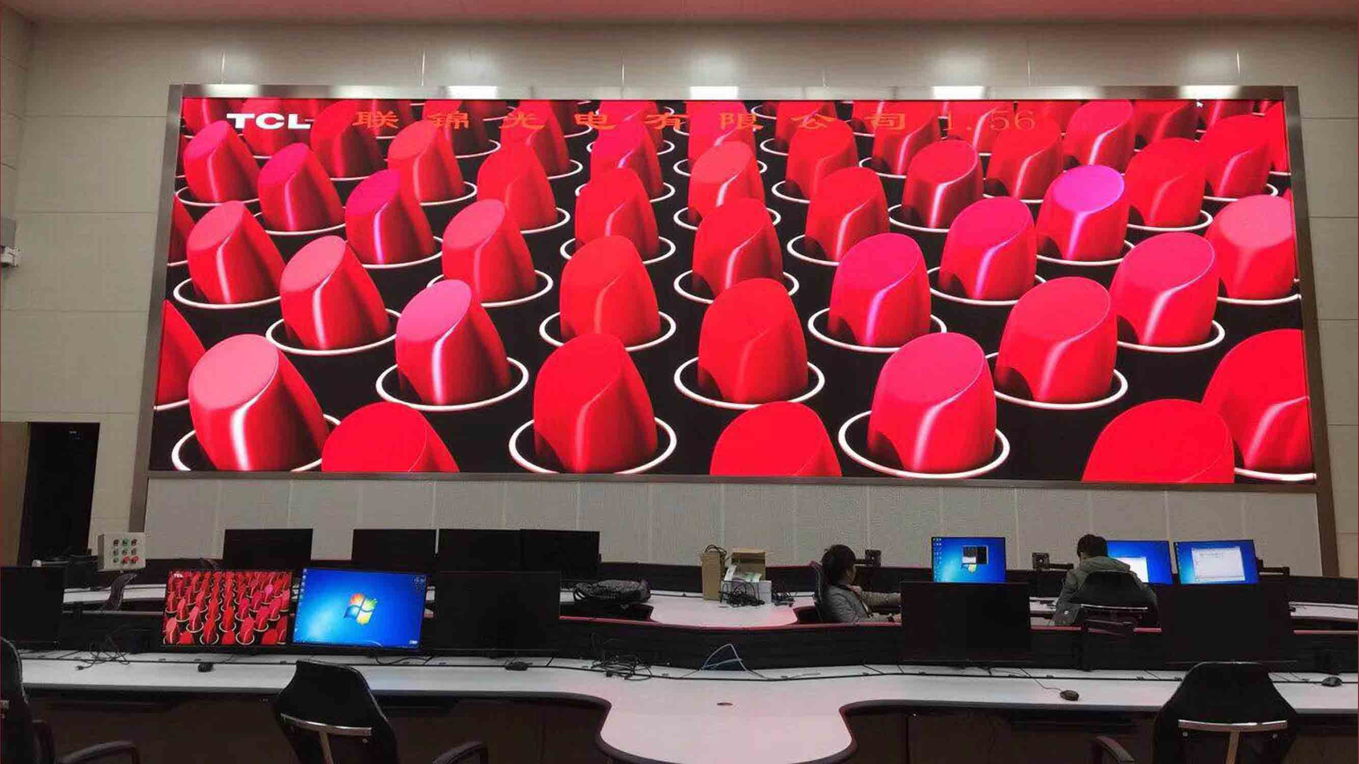 In this center, the RGB share LED display is P1.56 pitch. The screen size is 50㎡, it is one of the biggest P1.56 small pitch LED display for monitoring center in China.